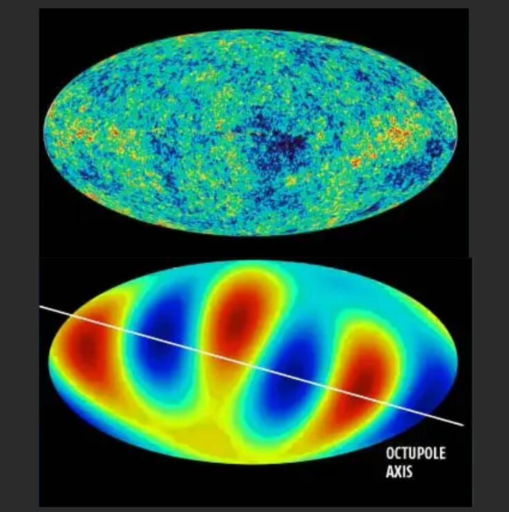 Data recorded by 3 separate probes shows that the Cosmic Microwave Background has 2 axes that span the entire universe:- 1 aligned with Earth’s equator