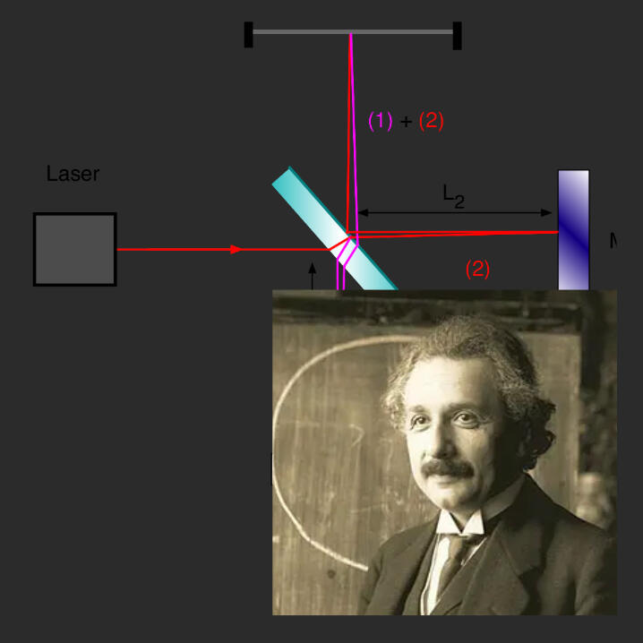 Physicists attempt to detect Earth’s motion through space by comparing two light beams — one beam in the direction of the Earth's motion, the other perpendicular. They expect a big difference in the phases of the light beams, but there isn't one.